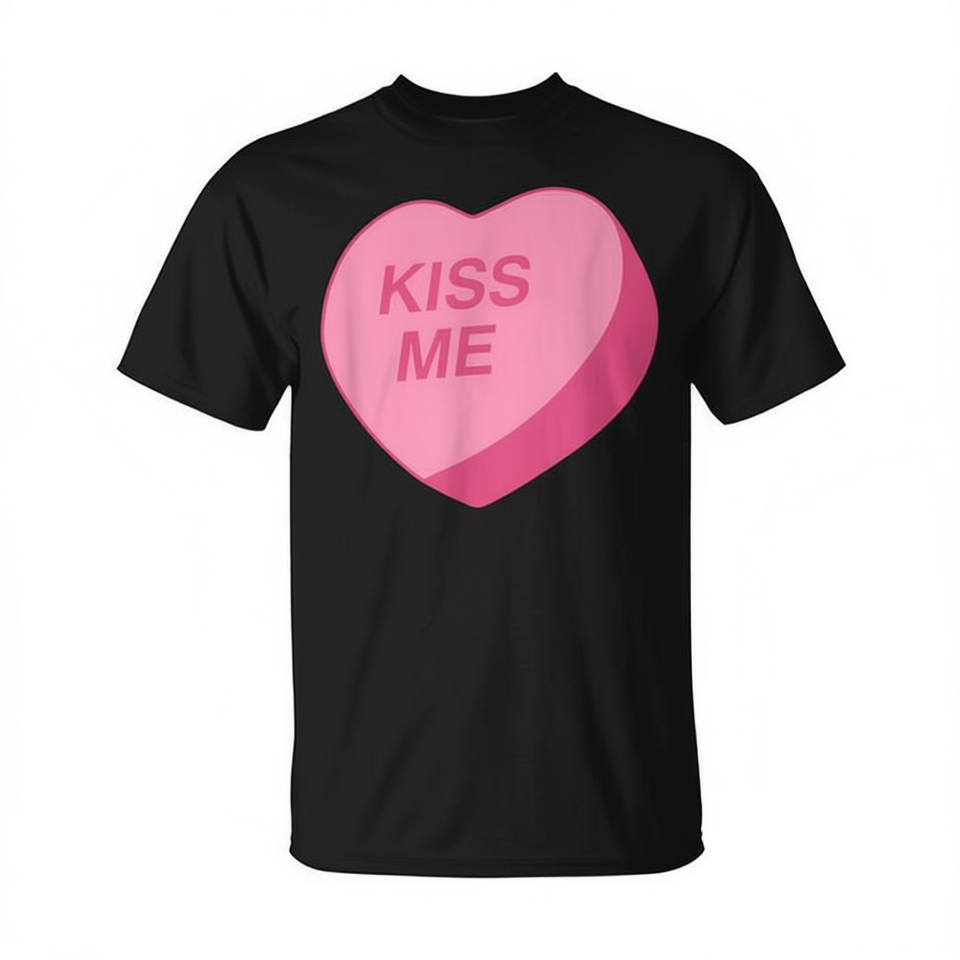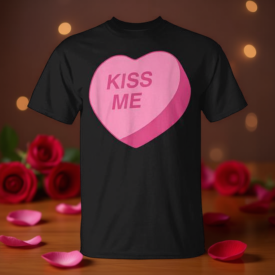 T-shirt Candy Heart Kiss Me per San Valentino, nera, per adulti, unisex