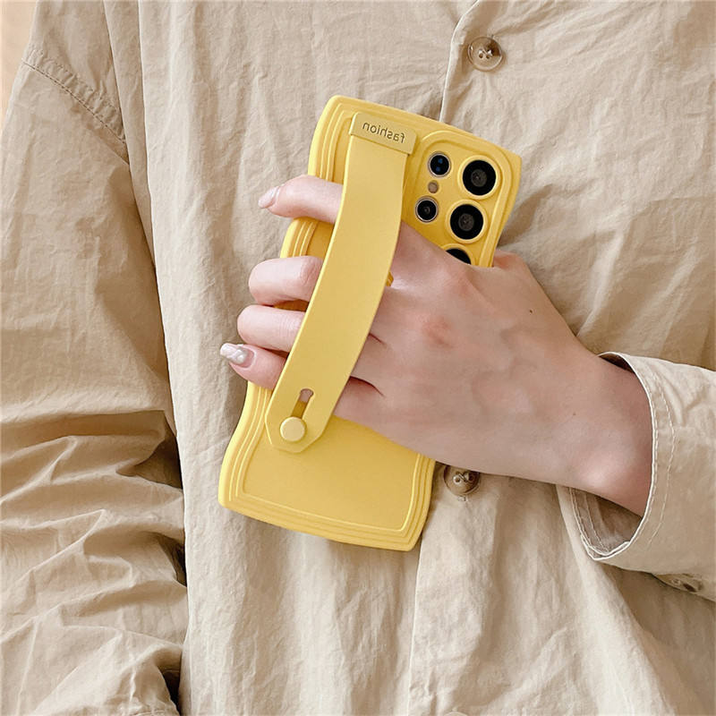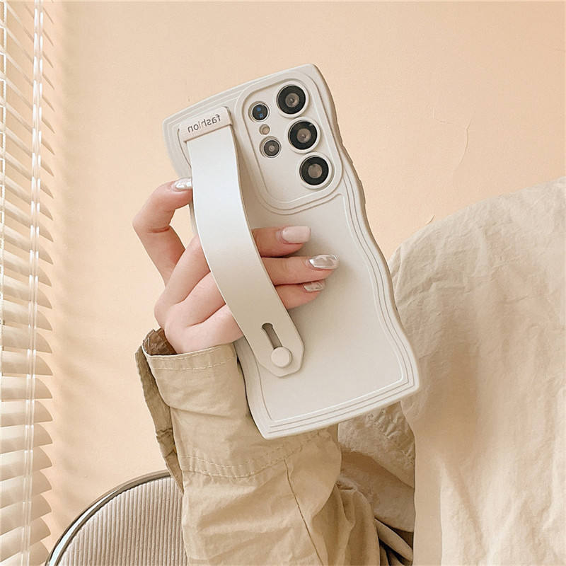 Candy Wristband Holder Wavy Frame Case for Samsung S24 S23 Ultra S22 S21 S20 Plus FE A54 A53 A14 A13 A34 A52S Silicone Cover