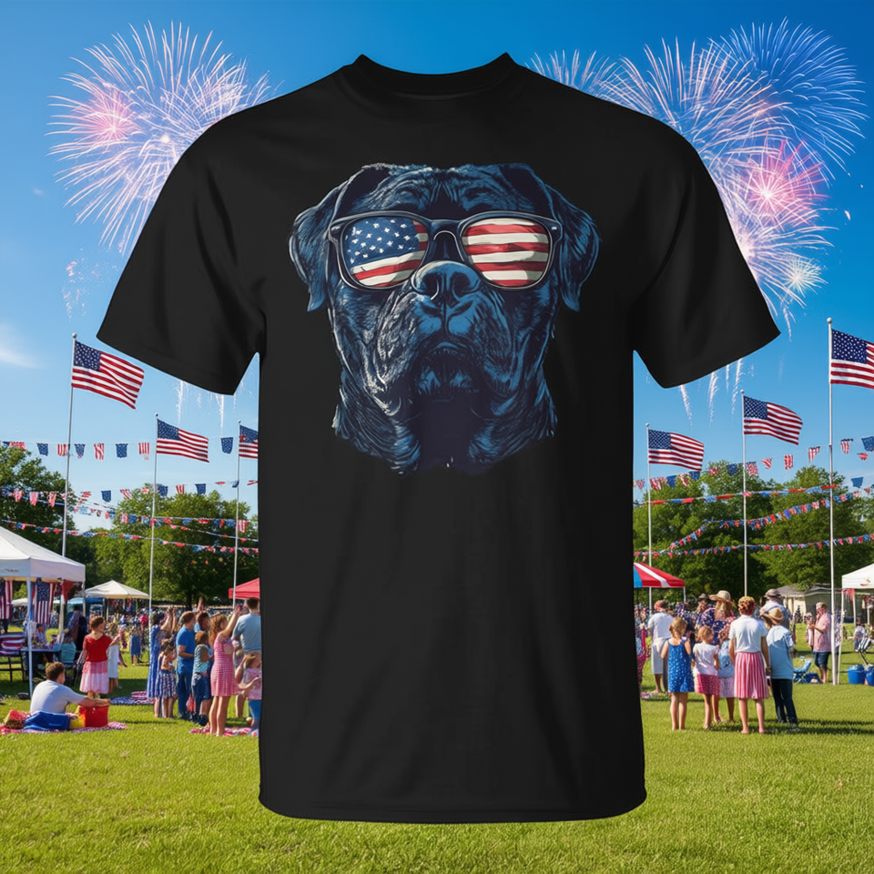 T-shirt Cane Corso con bandiera degli Stati Uniti e occhiali da sole per amanti dei cani del 4 luglio