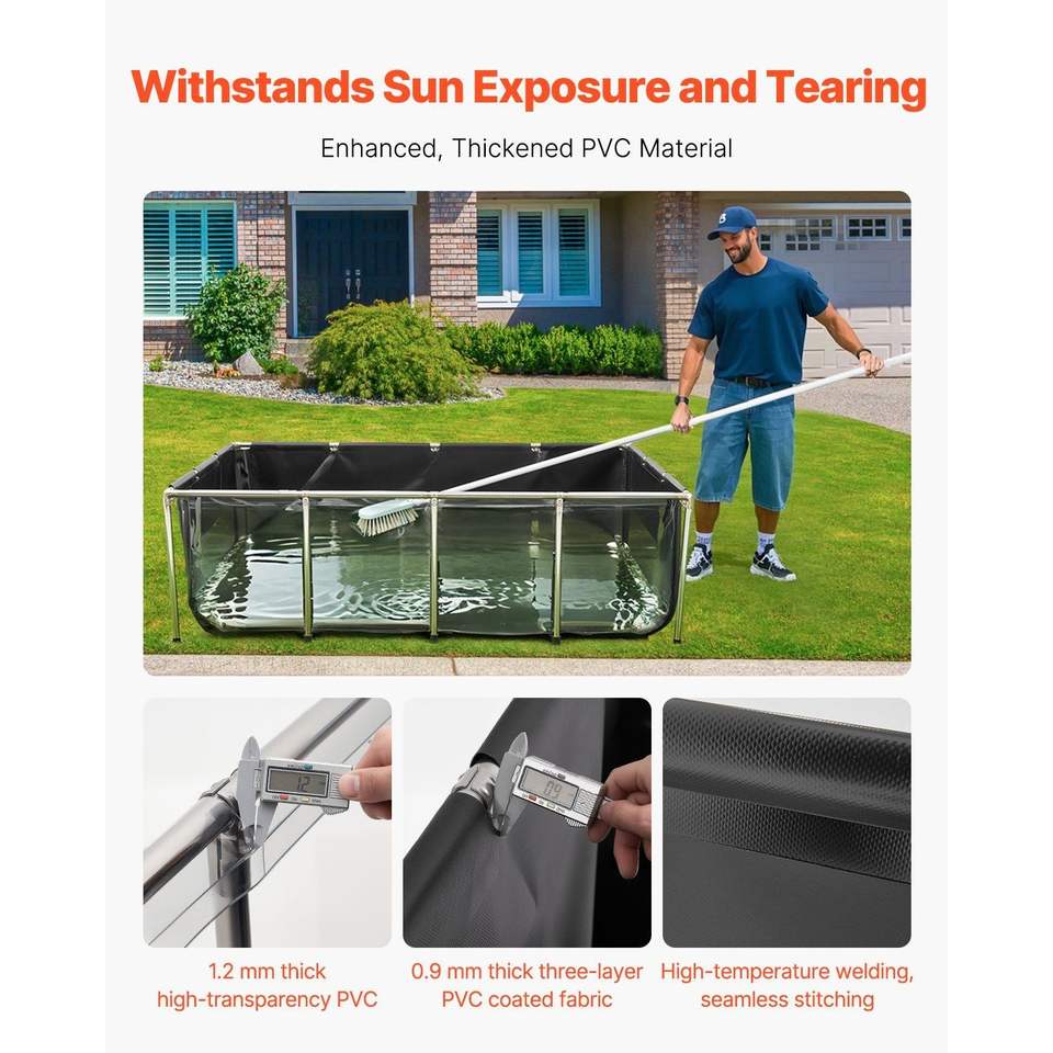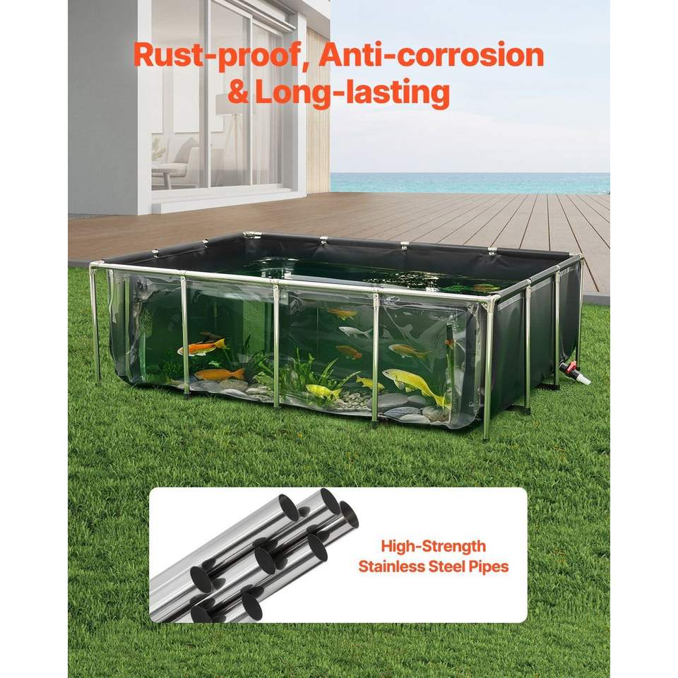 Vasca per Pesci in PVC Canvas 470 Gal, Pannello Trasparente, Rettangolare, per Koi e Pesci Rossi, Accessorio per Acquario in Acciaio Inox