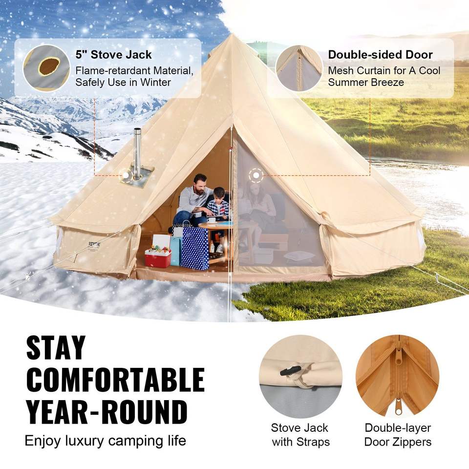 Canvas Bell Tent 4 Seasons 7m/22.97ft Yurt Tent Breathable Camping Tent with Stove Jack Holds 12 People for All Seasons