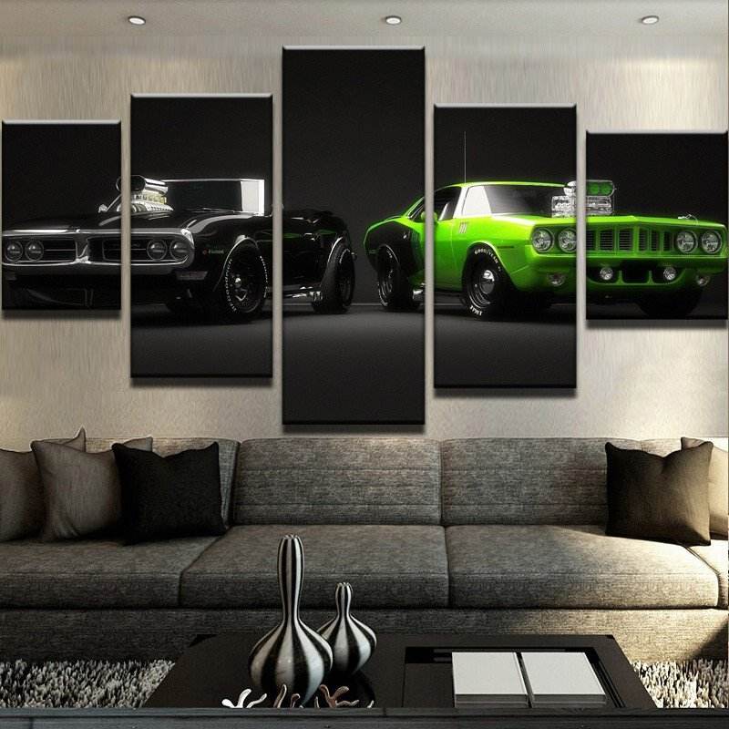 Canvas Wall Art Poster Stampe Su Tela Pittura Immagini A Parete Per Soggiorno Decorazioni Per La Casa 5 Pezzo Cool Car Olio Stampe