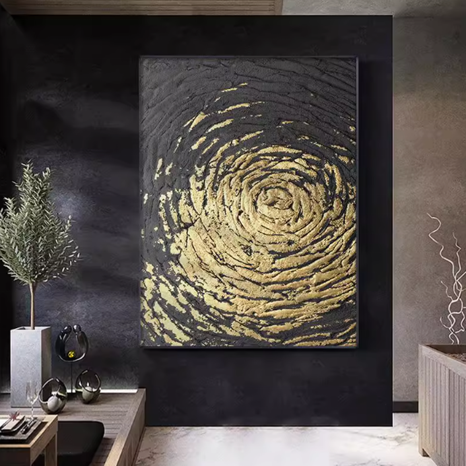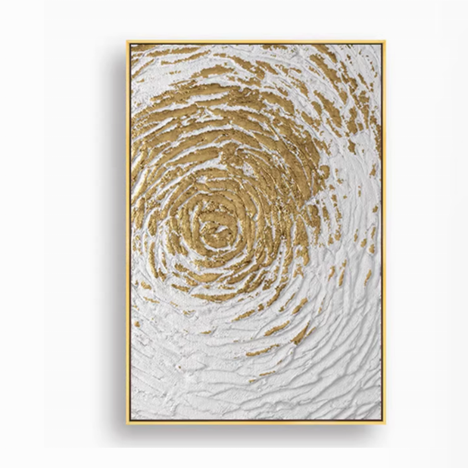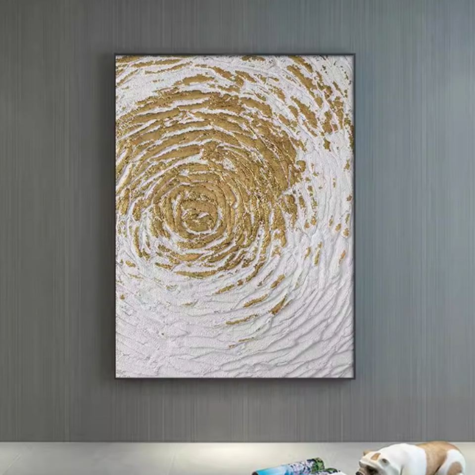 Canvas Wall Art With Gold Leaf Ripple Circle 3D Abstract Texture 100% Hand-made Oil Painting Hanging Decorative Painting