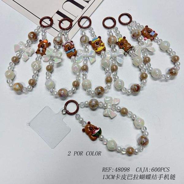 Catena per telefono Capibara Bow da 13 cm con perle e ciondolo a forma di orsetto per decorazione del cellulare