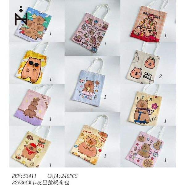 Capibara Canvas Tote Bag 32x36cm Candy Pattern Fashionable Design Women Shopping Bag