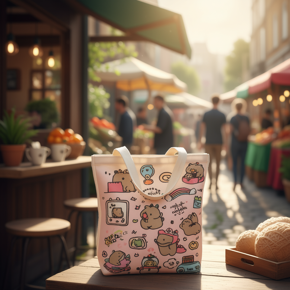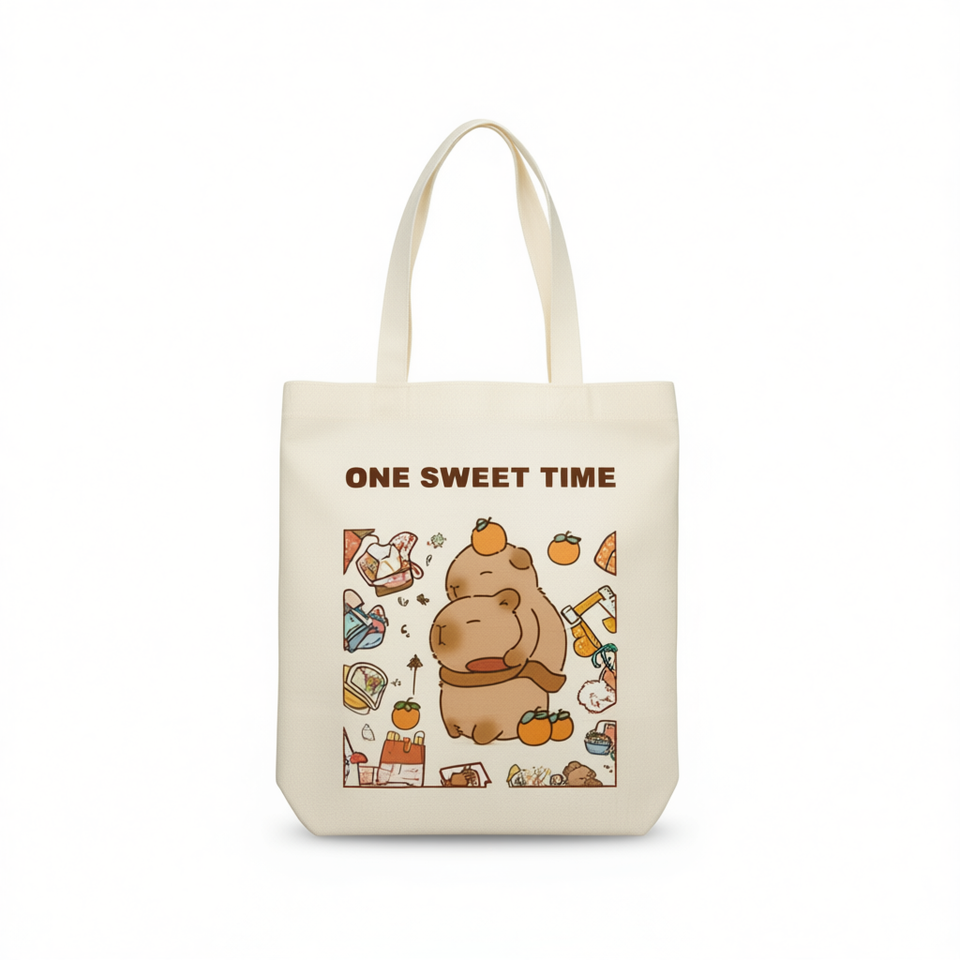 Capibara Canvas Tote Bag 32x36cm Women's Reusable Shopping Bag With Cute Animal Print Design