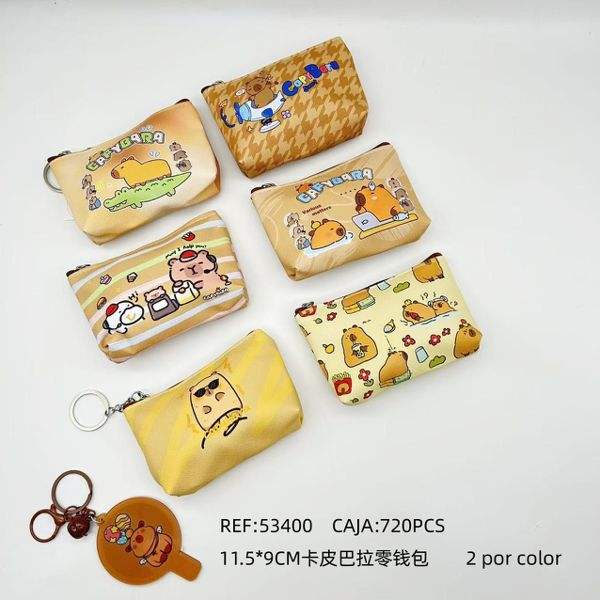 Portamonete Capibara 11.5x9cm, Portafoglio con Cerniera Cartoon, Mini Portachiavi Unisex in Microfibra e Pelle Sintetica