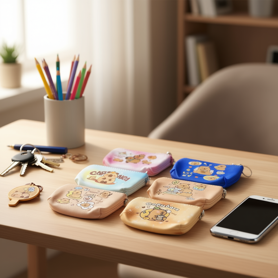 Portamonete Capibara 11.5x9cm, Mini Borsa Cartoon con Cerniera, Portachiavi Unisex in Microfibra e Pelle Sintetica