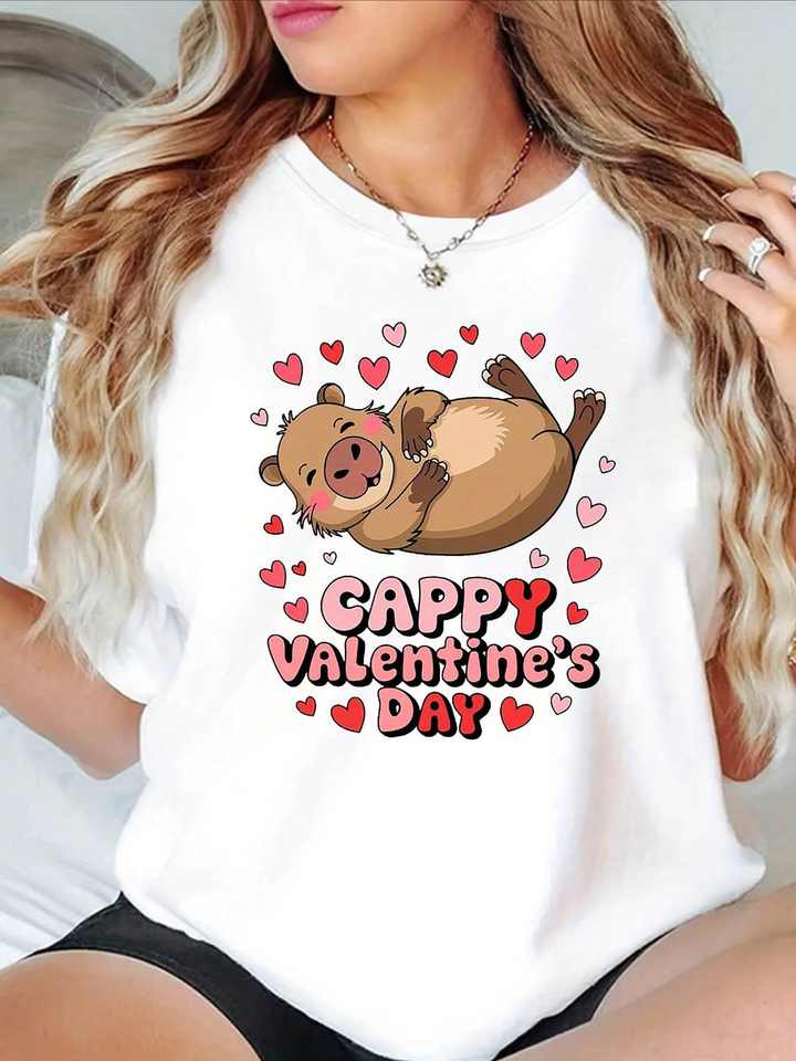 Cappy Valentine's Day Koala Print Women's Casual Round Neck T-Shirt Spring Summer 100% Cotton Jersey Short Sleeve