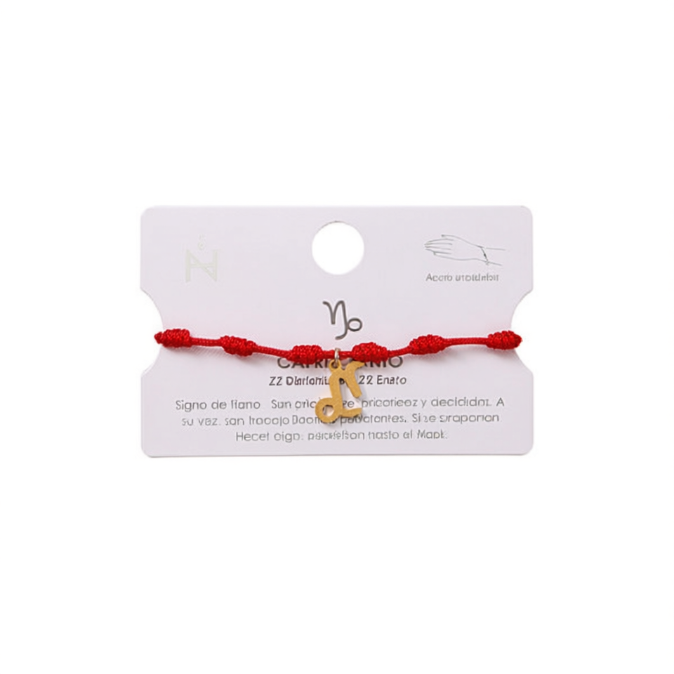 Braccialetto Portafortuna Capricorno con Filo di Cera Rosso Placcato Oro, Gioiello Unisex per Festival