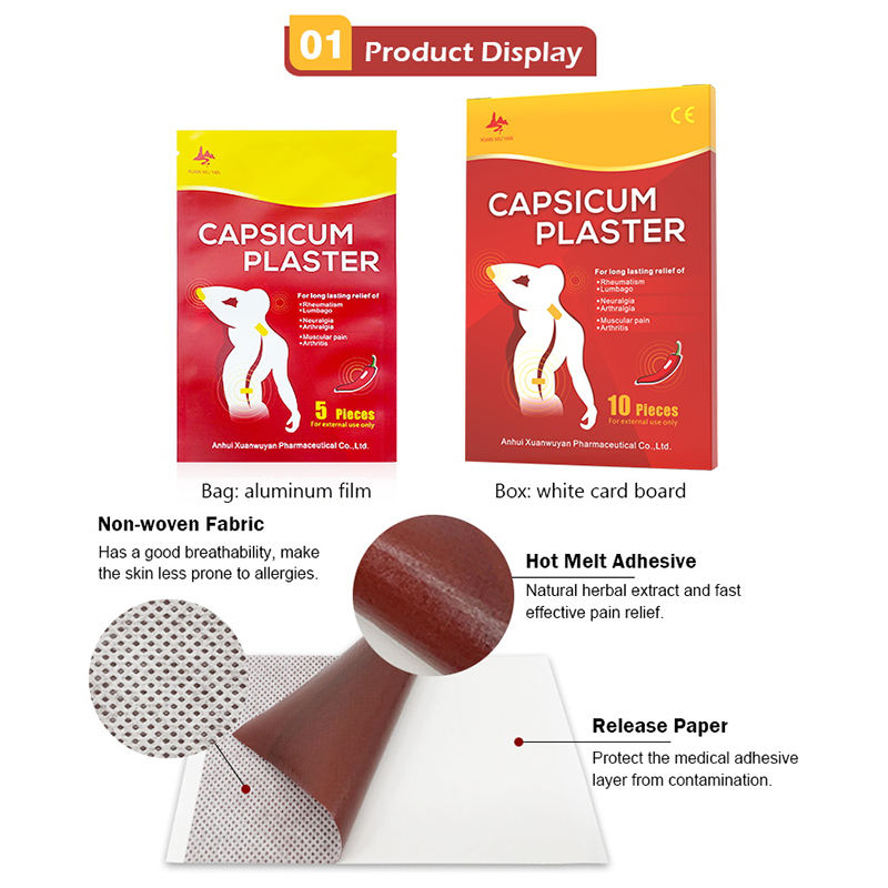 Capsicum Heat Patch Back Neck Pain Natural Herbal Pain Plaster Instant Warming Effect for Certified 3-Year Shelf
