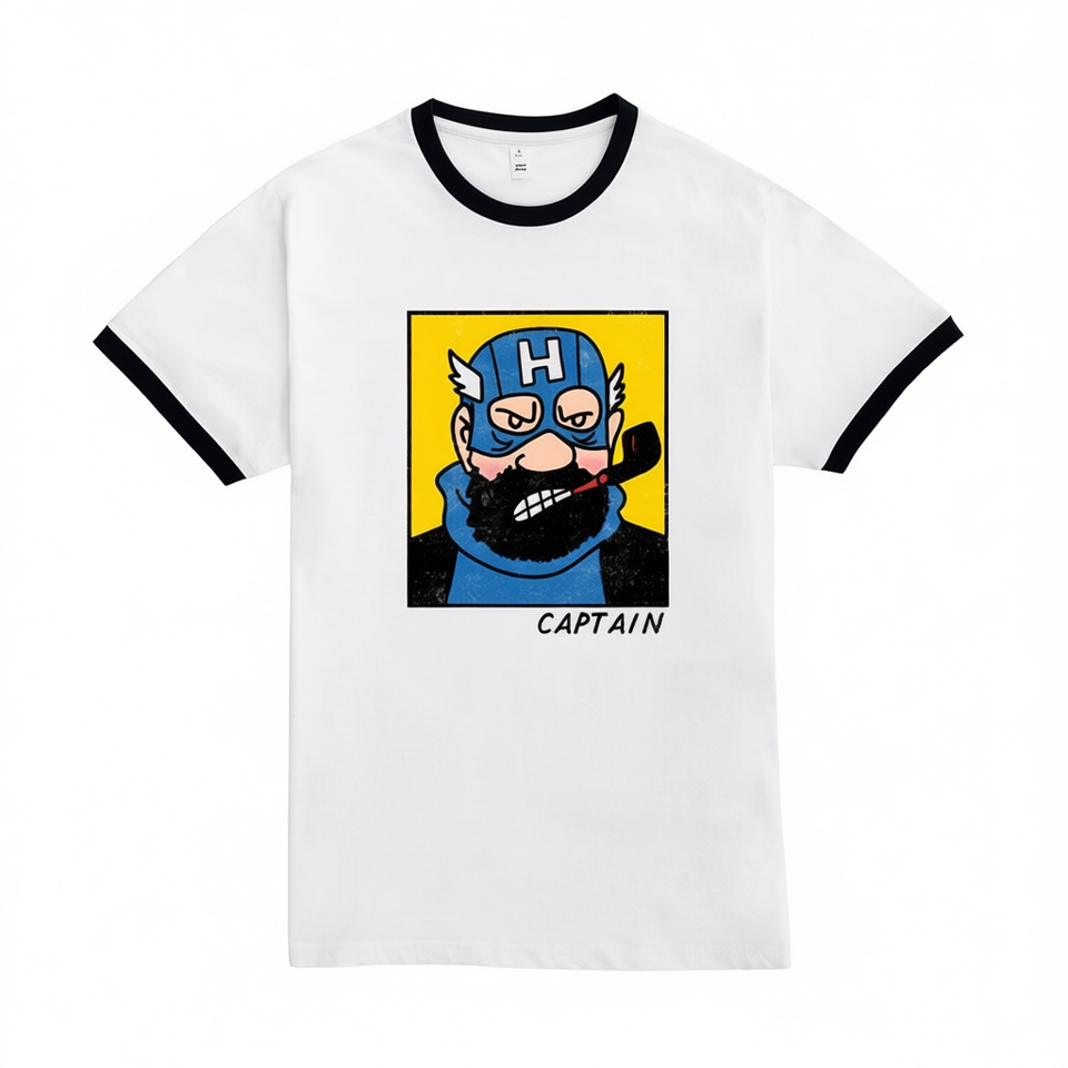 T-shirt Captain Adventure bianca con stampa grafica girocollo unisex per adulti taglia M