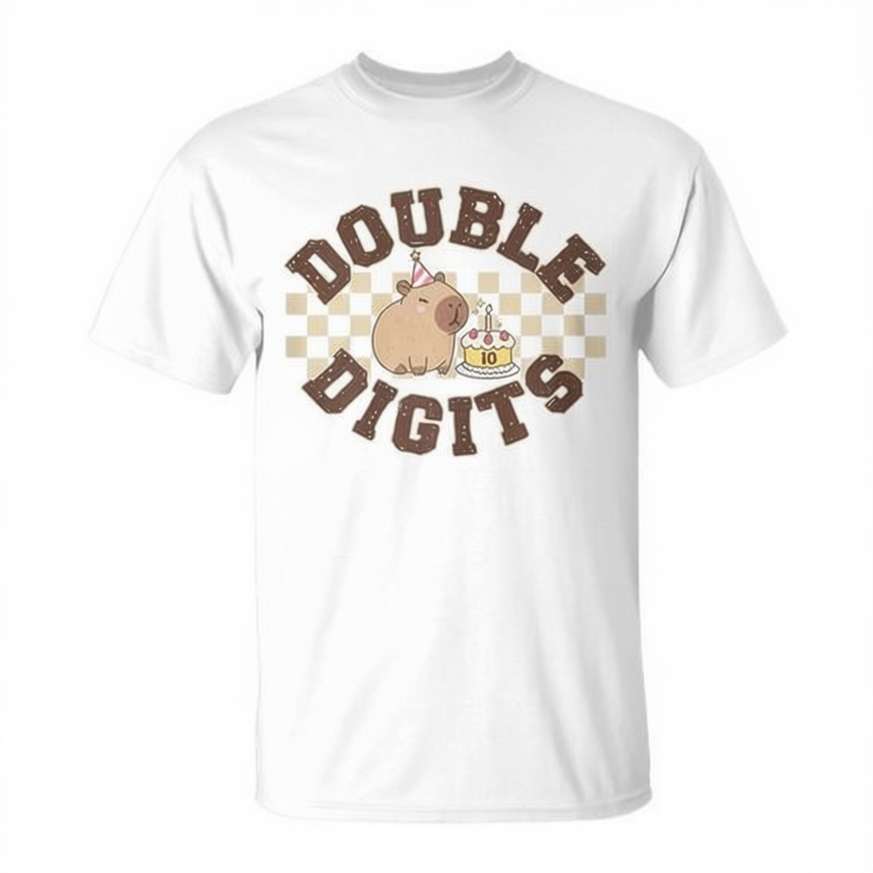 T-shirt promozionale per il decimo compleanno della Capybara, con numeri a due cifre, per bambini di dieci anni