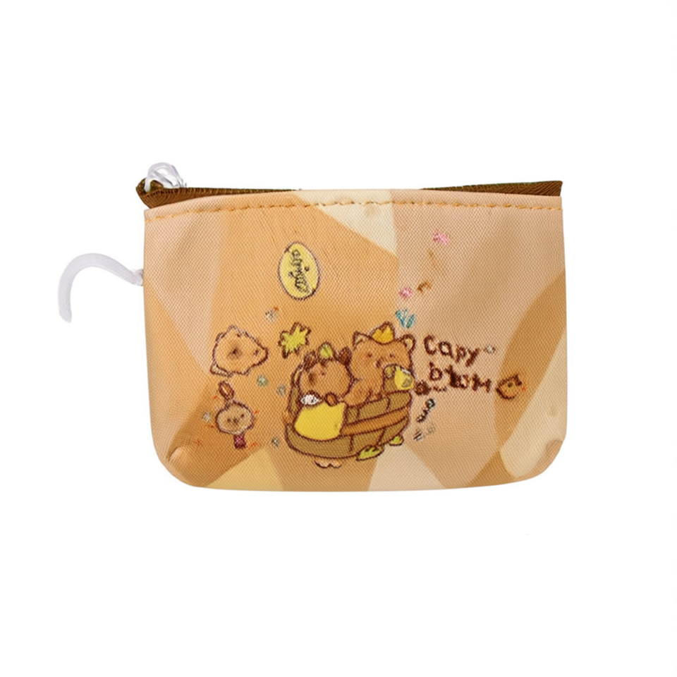 Portamonete Capybara 11,5x9 cm Mini portafoglio con cerniera Design a cartoni animati per ragazze Portachiavi compatto in microfibra e pelle sintetica