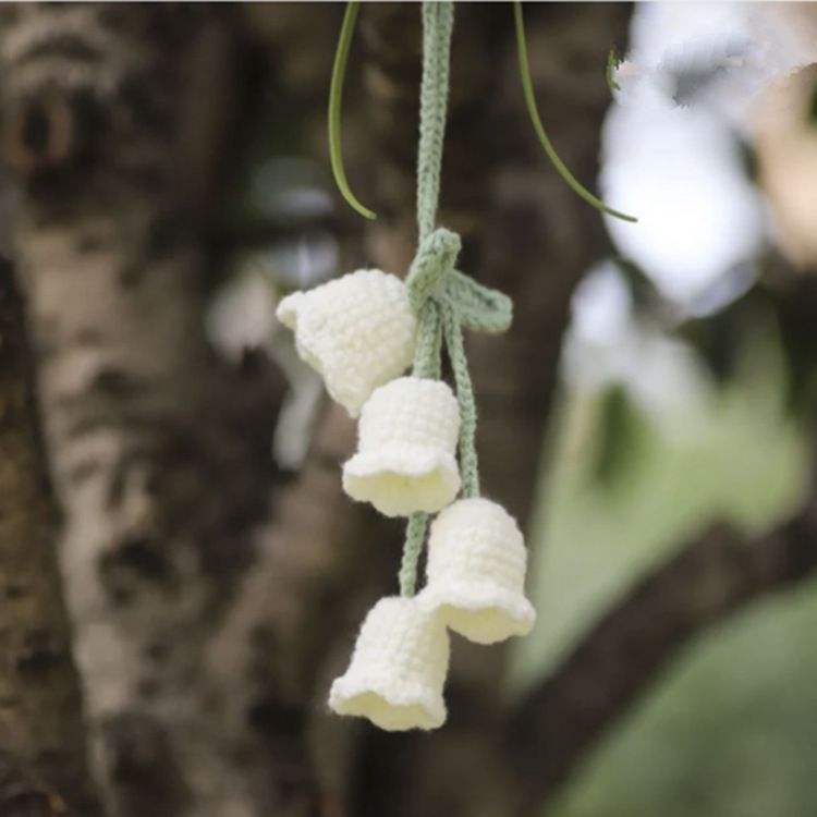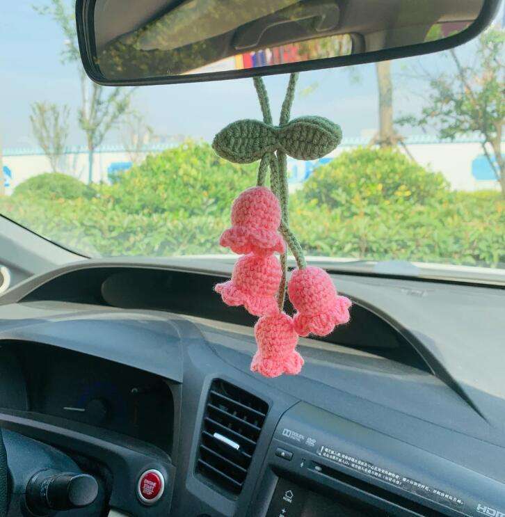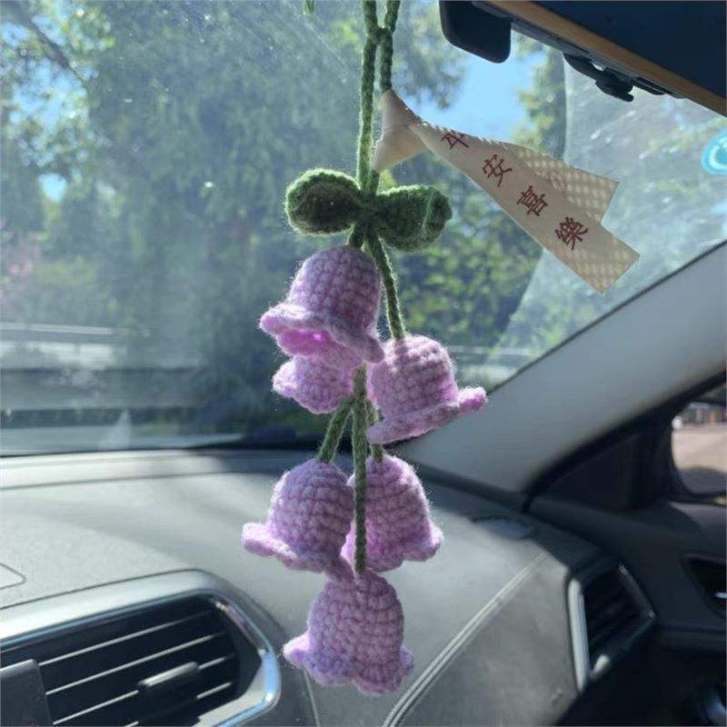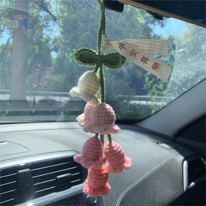 Accessori per auto fatti a mano specchio auto appeso grazioso giglio della valle lavorato a mano uncinetto fiore decorazione per specchio portachiavi