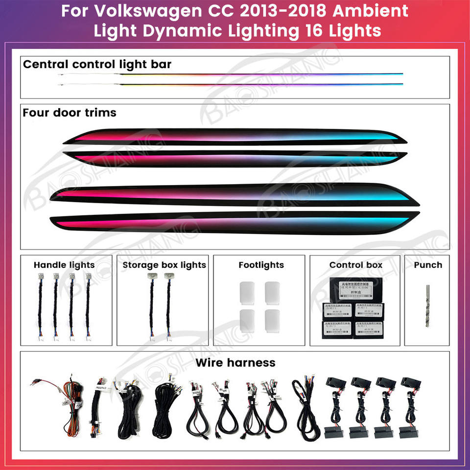 Luce ambientale auto per Volkswagen CC 2013-2018 Set completo di illuminazione dinamica 16 luci vari colori possono essere cambiati