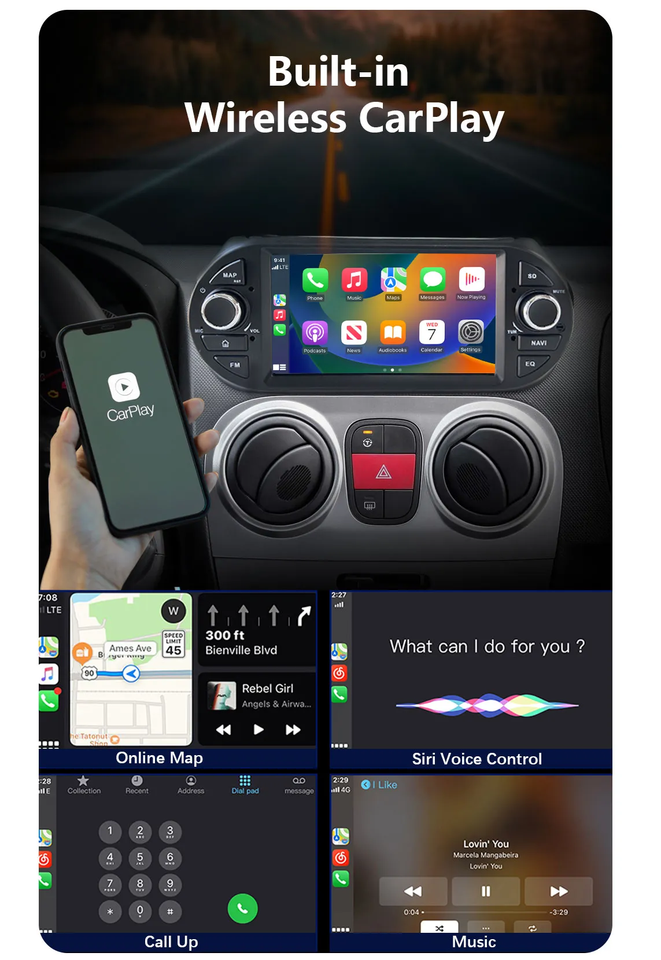 Car Carplay for Fiat Fiorino Citroen Nemo Peugeot Bipper 2008-2017 GPS Navigation Carplay Autoradio Android Auto Radio Head Unit