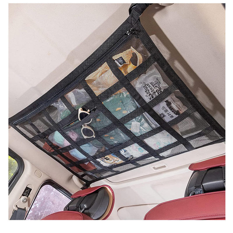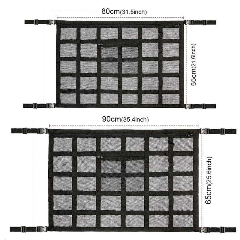 Tasca della rete di carico del soffitto dell'automobile, regolabile doppio strato maglia SUV tetto organizzatore lungo viaggio di stoccaggio borsa per trapunta asciugamano giocattolo vari