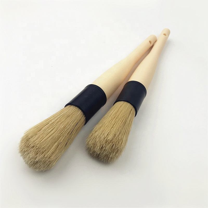 Spazzola per la pulizia degli interni auto, per sedili in pelle, con manico in legno, spazzola per sedili auto