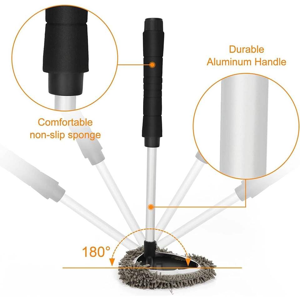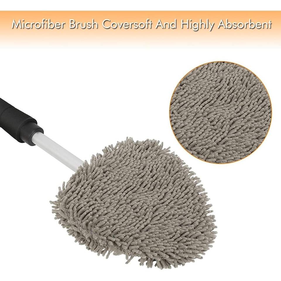 Set di Strumenti per la Pulizia dell'Auto con Manico Estensibile, 3 Pezzi in Microfibra, 2 Pezzi in Ciniglia, Strumento per la Pulizia del Parabrezza, Cura degli Interni
