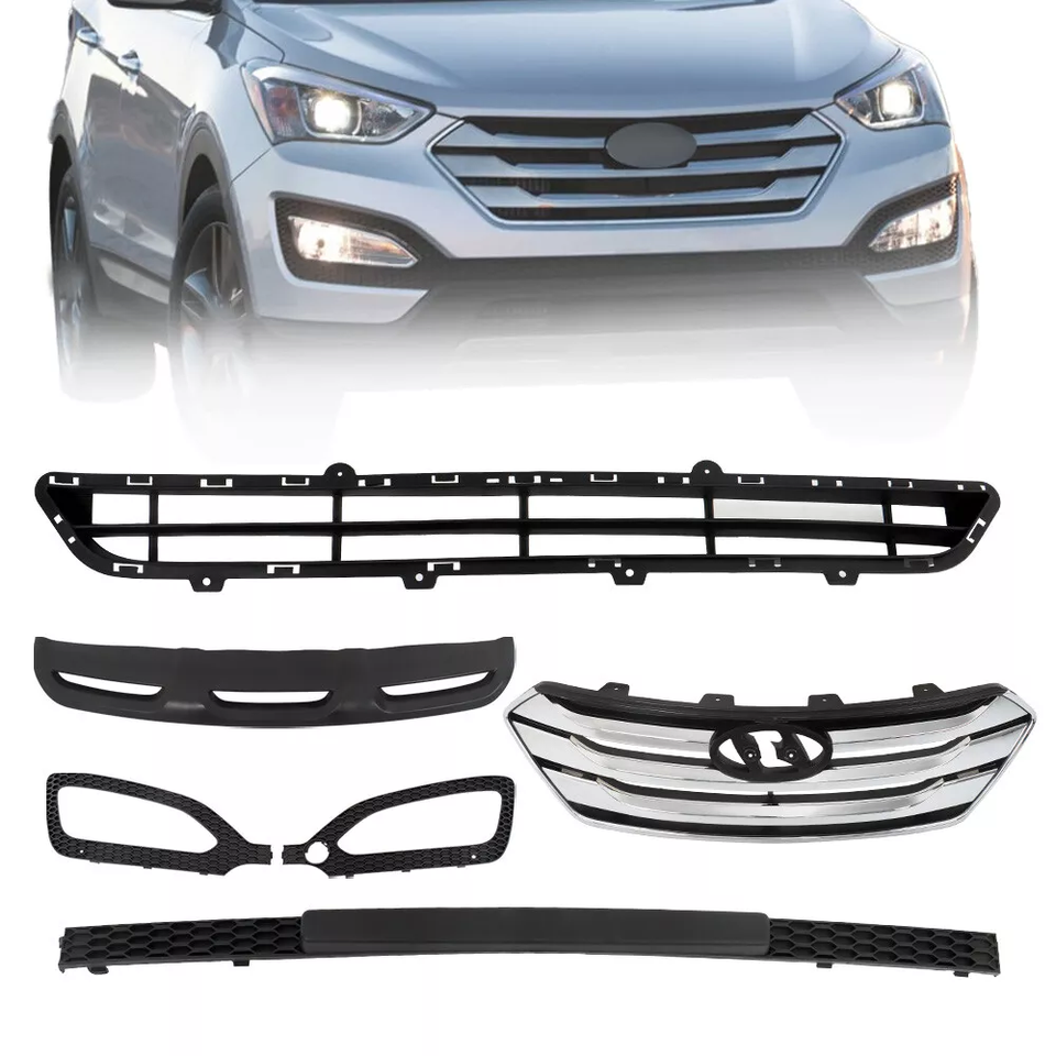 Kit Carrozzeria Anteriore Auto, Parti Auto, Griglia Superiore e Inferiore Anteriore, Cornice Fendinebbia, Striscia Paraurti per Hyundai Santa Fe Sport 2013-2016