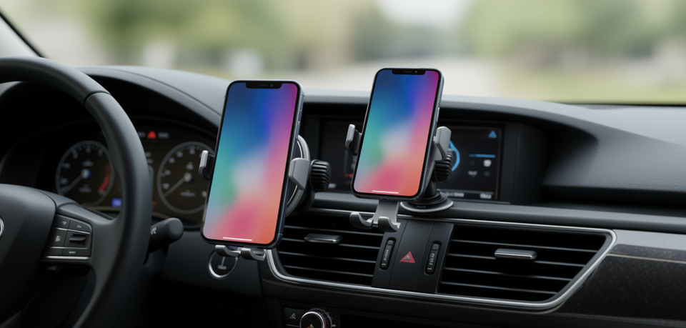 Supporto per Telefono da Auto con Montaggio sul Cruscotto, Rotazione a 360 Gradi, in Plastica e Metallo