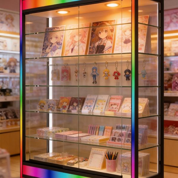 Vetrina per Modellini Auto con Vetro Temperato Personalizzato e Base Illuminata a LED Colorati, Espositore per Prodotti da Smoke Shop