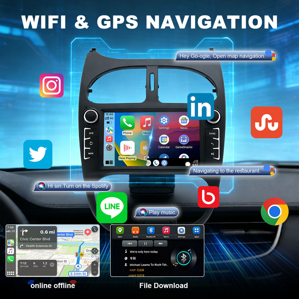 Car Radio for 2000-2008 Peugeot 206 Carplay Android13 Car GPS Radio Stereo RDS 6+64GB Android Auto Carplay WiFi Car Headunit 7in
