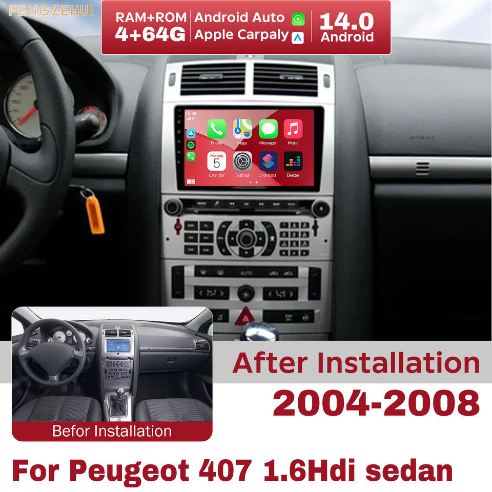 Car Radio for Peugeot 407 1.6Hdi Sedan 2004-2008 Android 14 Head Unit 9In Screen Car Multimedia GPS Navigation Wireless Carplay