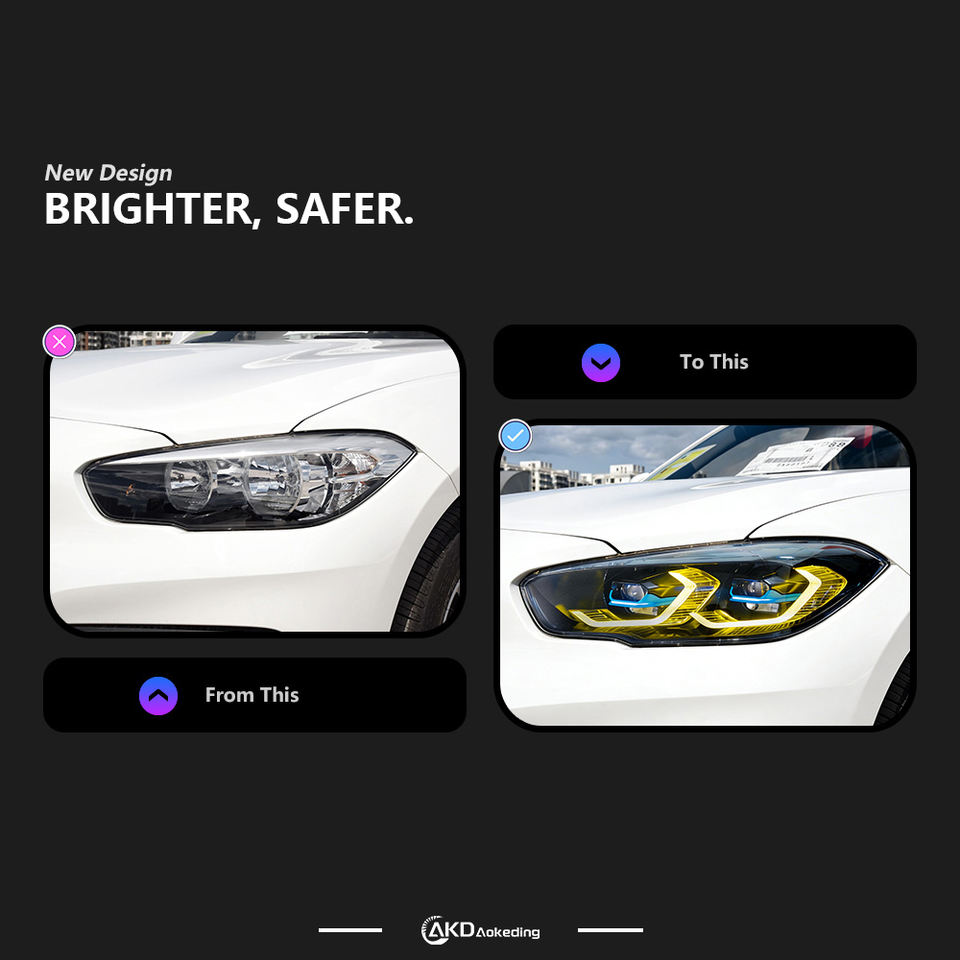 Faro Anteriore per BMW F20 2015-2018 F21 116i 118i 120i, Design con Lente a Proiezione LED, Luce Diurna e Indicatore di Direzione