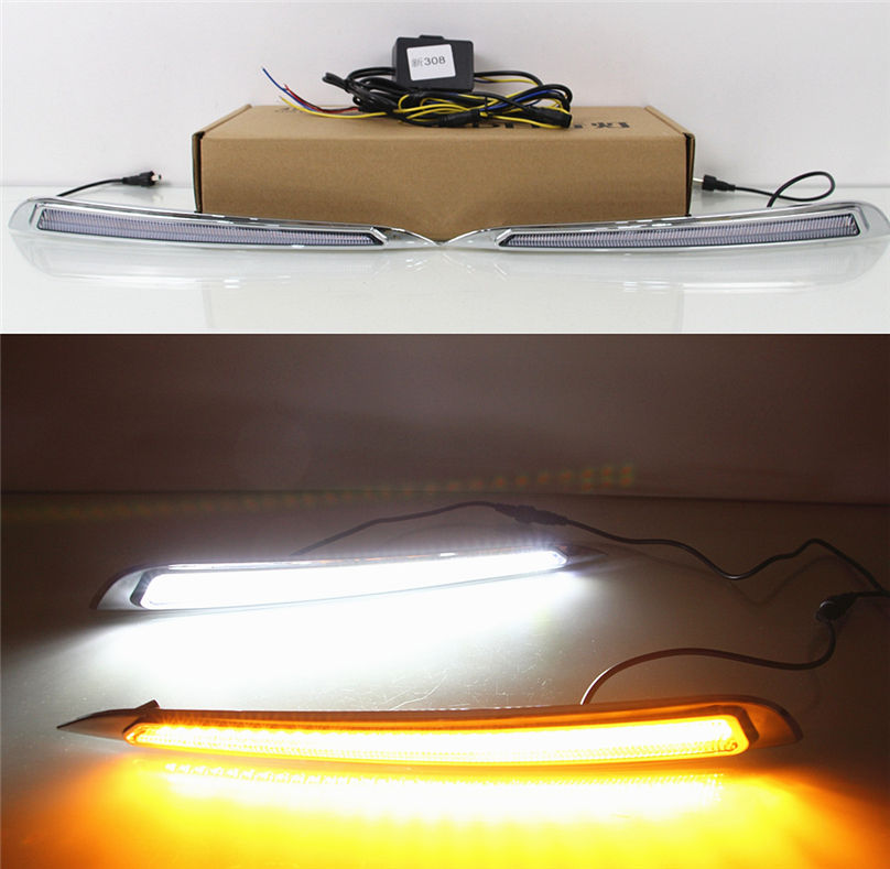 Car styling LED di guida DRL con Luce di Marcia Diurna giallo segnale di girata Nebbia Della Lampada Della Testa per Peugeot 308 2016 2017