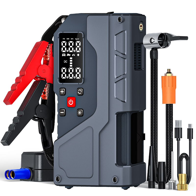 Avviatore di Emergenza Elettrico con Gonfiatore, Monitor Digitale della Pressione degli Pneumatici e Pompa