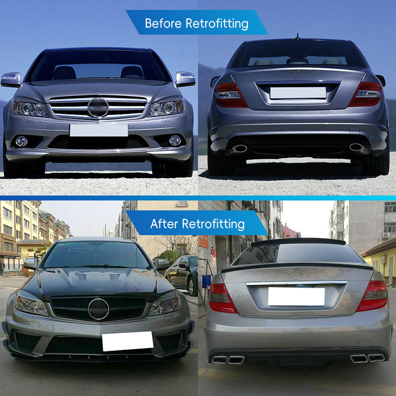 Kit di Aggiornamento Auto in Fibra di Carbonio Umida, Paraurti Anteriore e Posteriore, Cofano Motore, Parafango, Nuova Condizione, Compatibile con Mercedes-Benz Classe C 2008-2010 W204 Serie Black