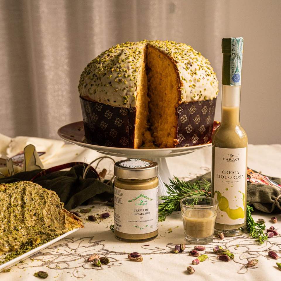 Caraci Panettone DOP Kit With Pistachio Cream And Liqueur Christmas Gift Set For Family Reunions Party