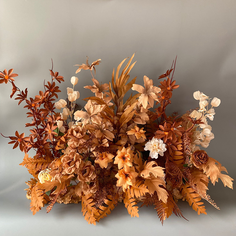Caramel Autumn Wedding Large Floral Arrangement Artificial Silk Flower Decoration for Coffee Aisle Wedding Background