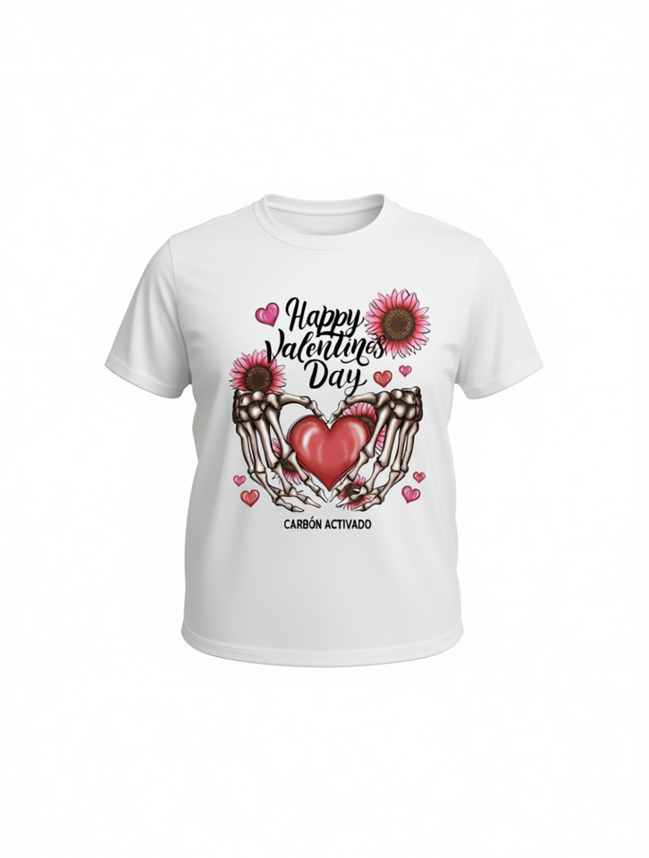 Carbn Activado Women's Short Sleeve Round Neck T-Shirt Skeleton Heart Sunflower Print Romantic Valentine's Day Casual Wear