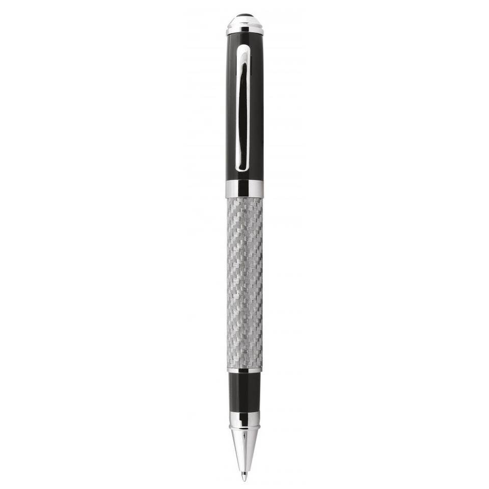 Carbon Fiber Rollerball Pen Black With Silver Trim Premium Writing Instrument