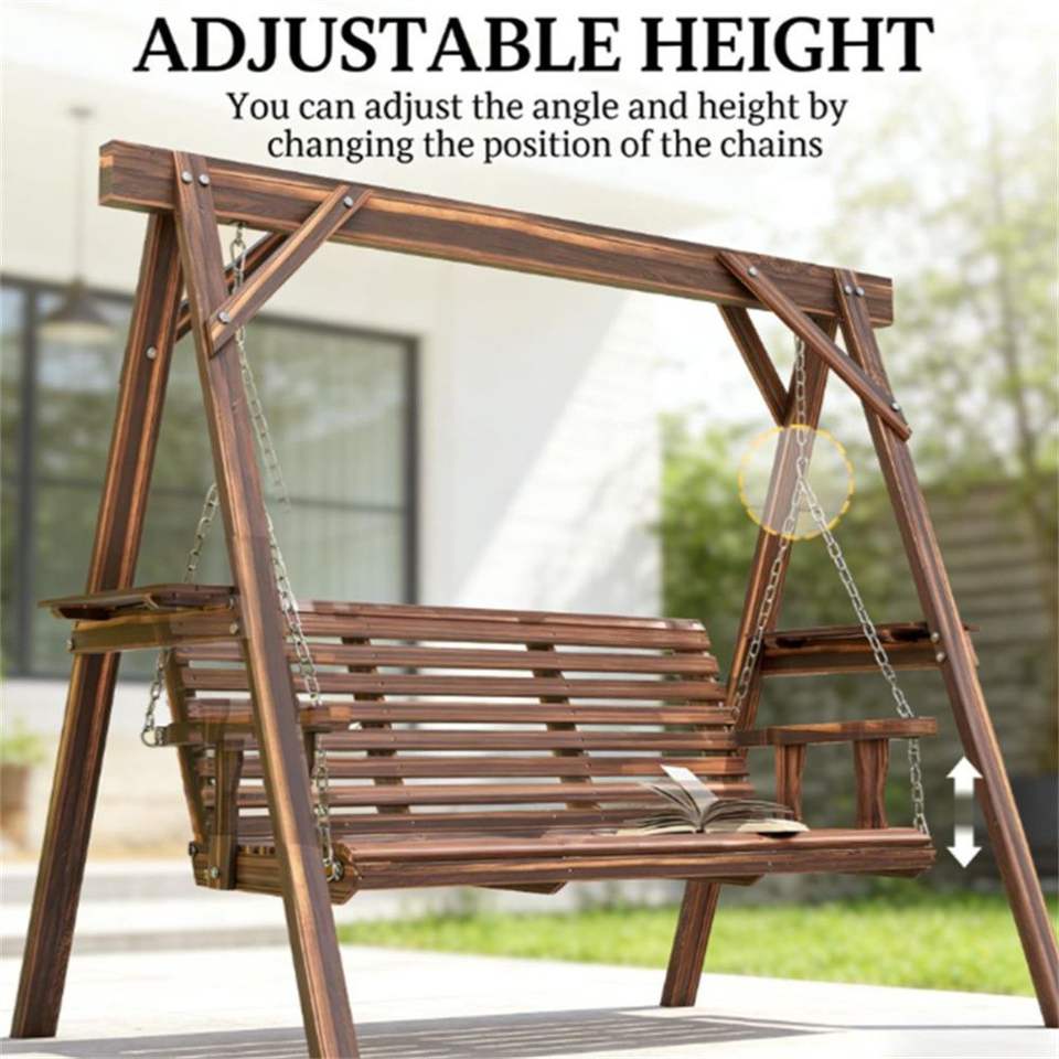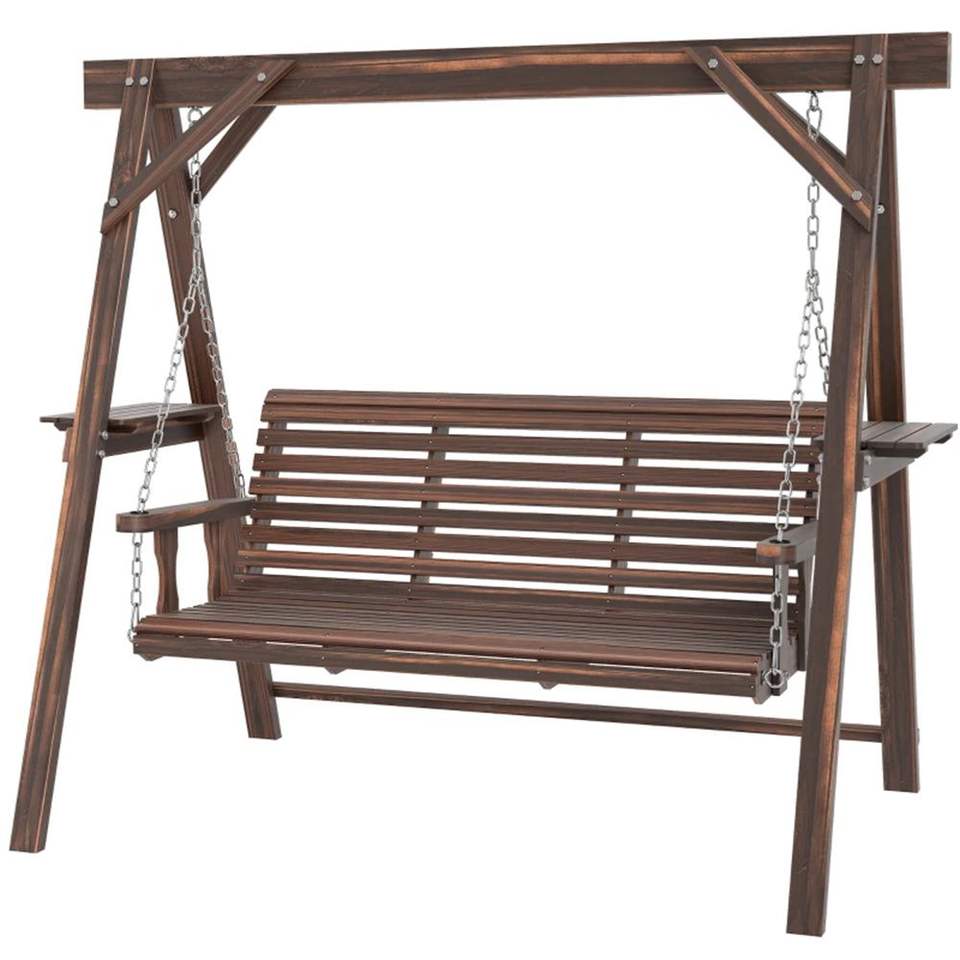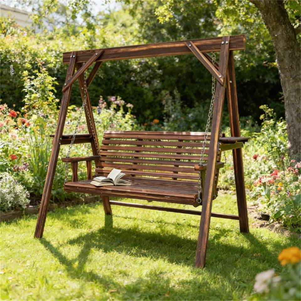 Dondolo da Esterno Marrone Carbonizzato con Supporto per Veranda, Terrazza o Giardino