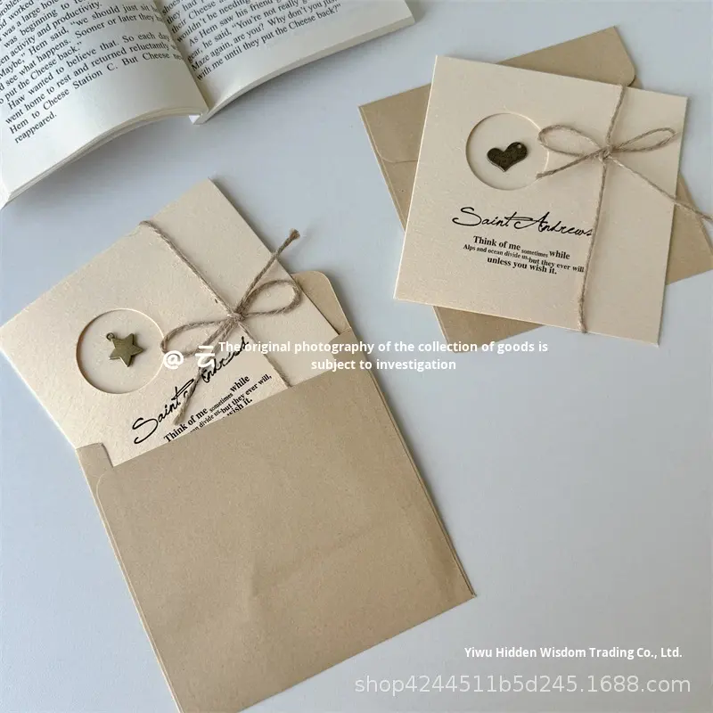 Cardboard Printed Heart Five-pointed Star Retro Greeting Card Decorative Envelope Set Birthday Gift Blessing Message
