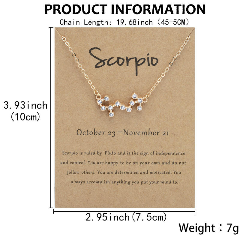 Dettagli della confezione:Cardboard Star 12 Zodiac Sign Necklaces Crystal Charm Chain Choker Necklace for Women Birthday Jewelry Gift