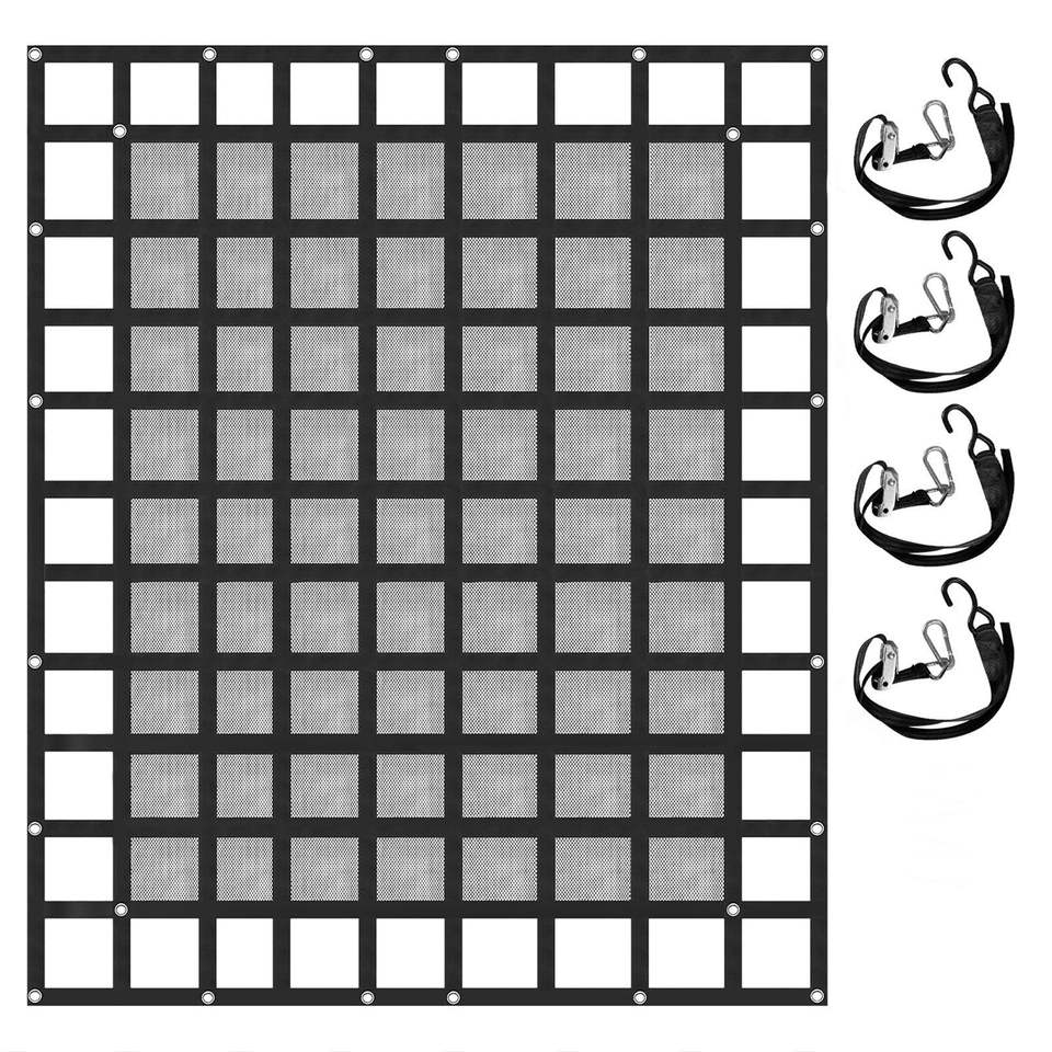 Accessori per il Controllo del Carico: Rete a Maglie Robusta 20x17 cm per Cassone Pickup con Ganci a S, Cinghie Trasversali e Fibbie a Camma