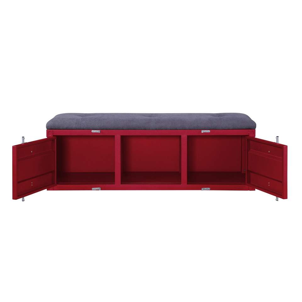 Cargo Gray Fabric Bench with Storage Red Finish Living Room Furniture