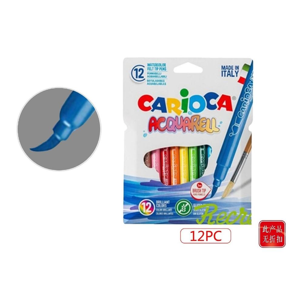 Carioca Acquarell 12-color markers in a cardboard box for drawing and writing.
