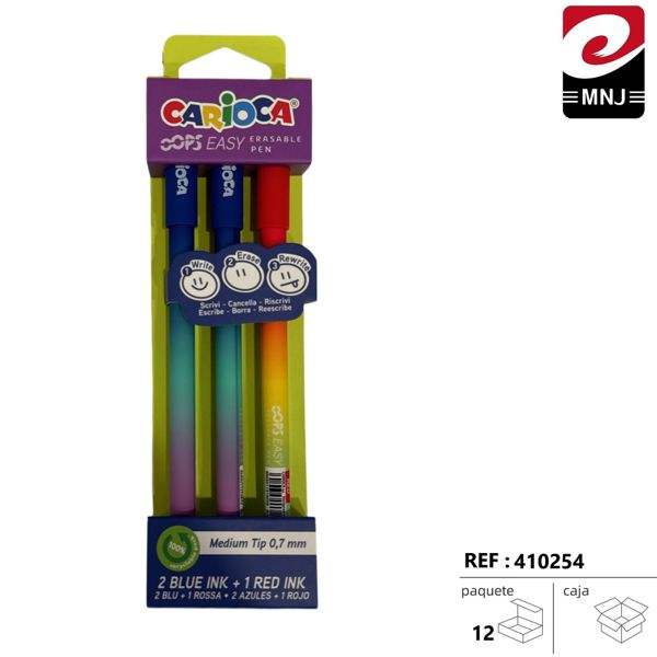Carioca Erasable Pens 3 Pack Medium Tip 0.7 Mm Blue Red Ink Writing Correction Supplies