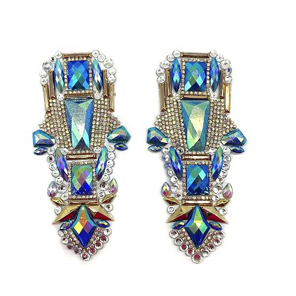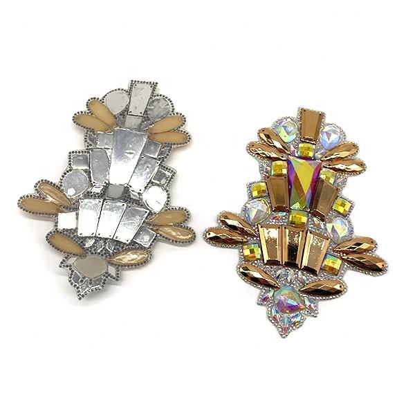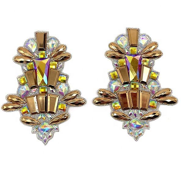 Carnival Gold Metal Acrylic Costume Accessories Iron on Rhinestone Trimming Resin Applique Patch for Notting Hill Carnival