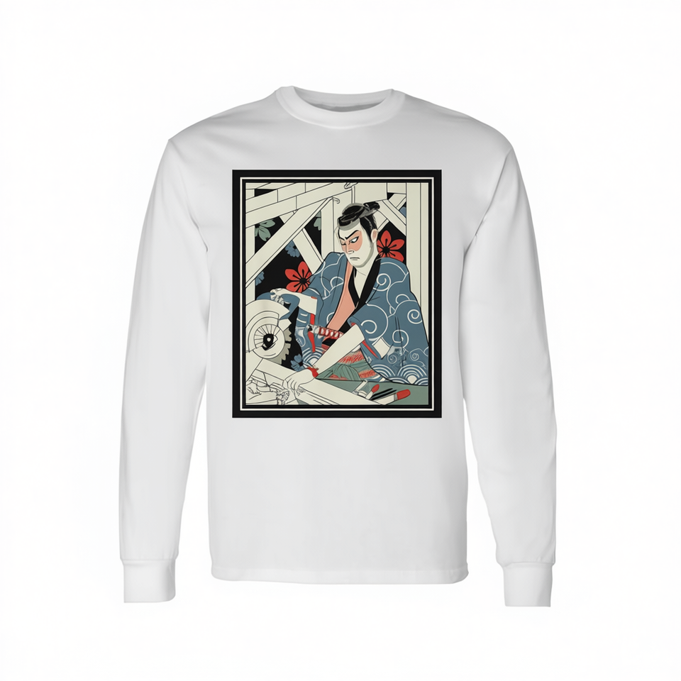Maglietta a Maniche Lunghe con Maschera da Guerriero Samurai Giapponese, Armatura e Spada - Prodotto Promozionale