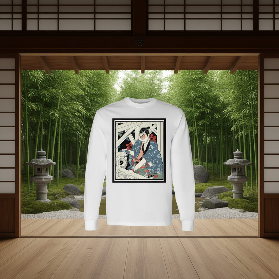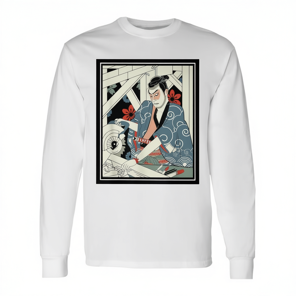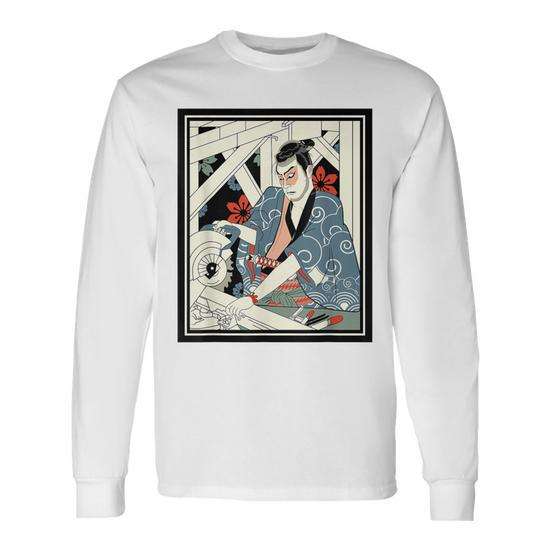 Maglietta a Maniche Lunghe con Maschera da Guerriero Samurai Giapponese, Armatura e Spada - Prodotto Promozionale