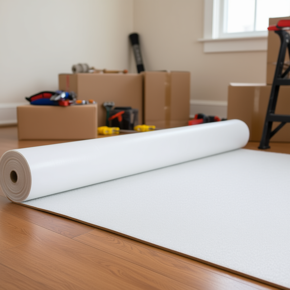 Pellicola Protettiva per Tappeti 39 Pollici x 100 Piedi, Tessuto in Fibra Bianca Facile da Tagliare, Protezione per Superfici di Pavimenti per Edilizia e Immobiliare