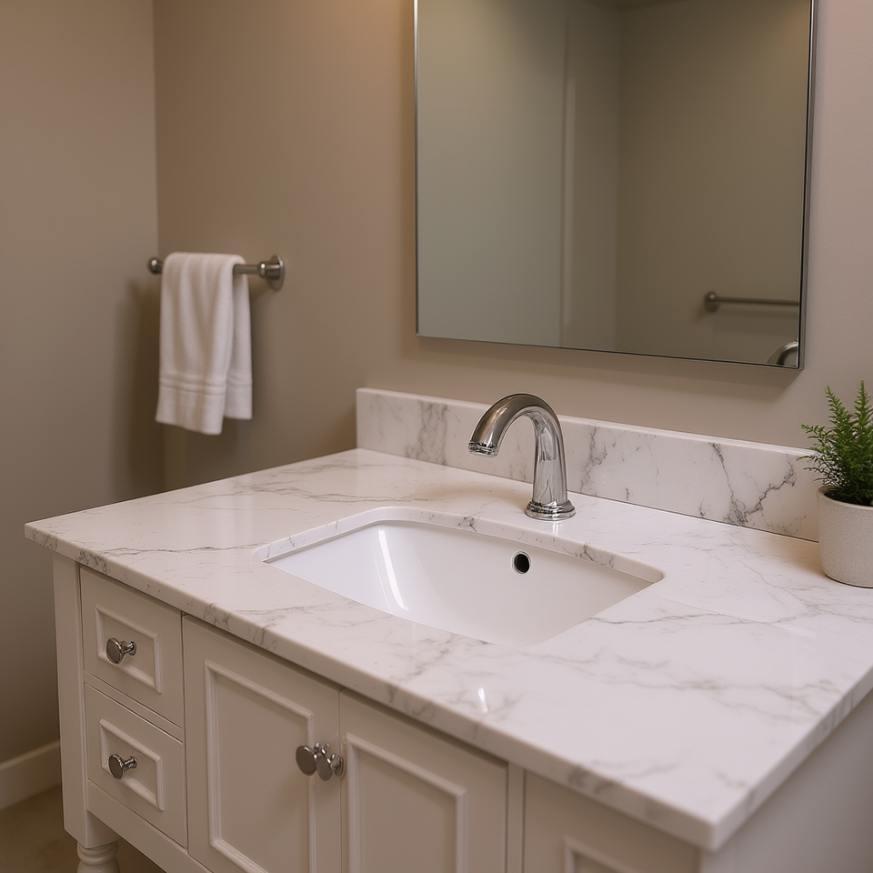 Carrara White Marble Color 43''x22'' Bathroom Vanity Top Single Faucet Hole Undermount Ceramic Sink Back Splash Engineered Stone