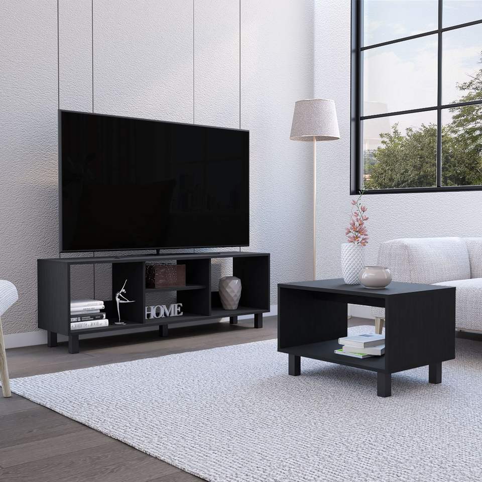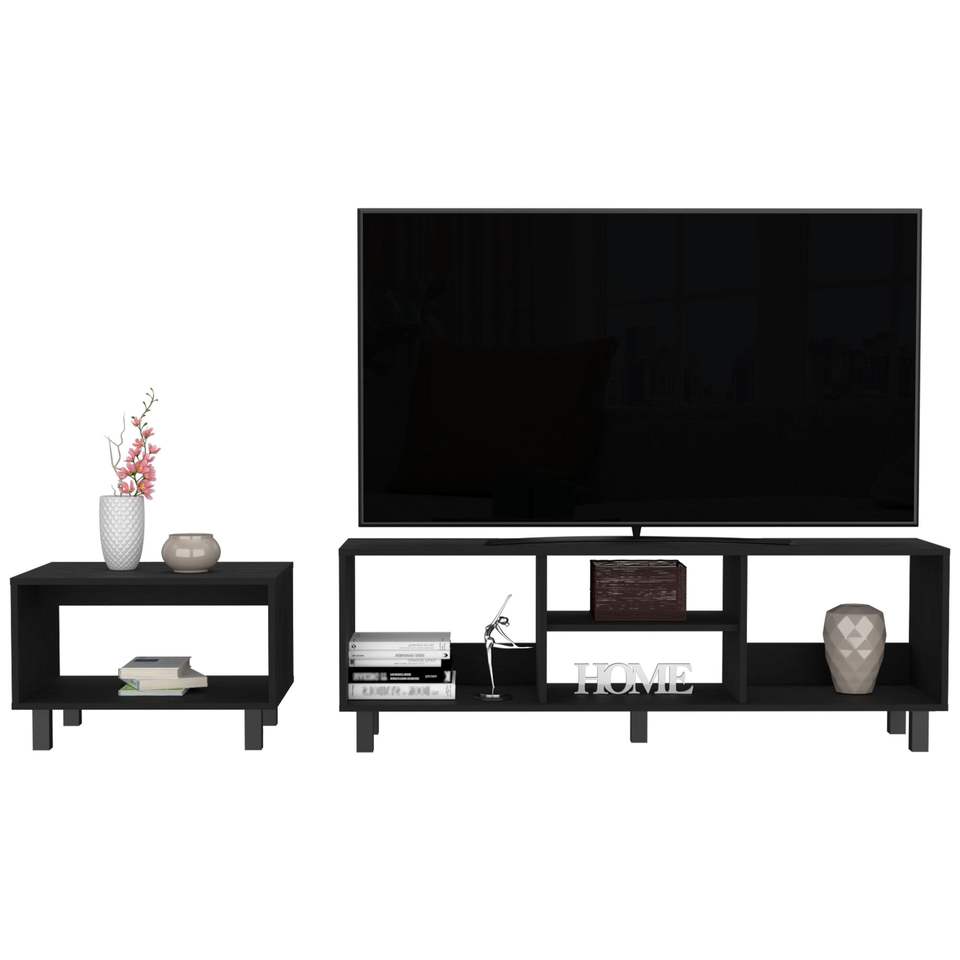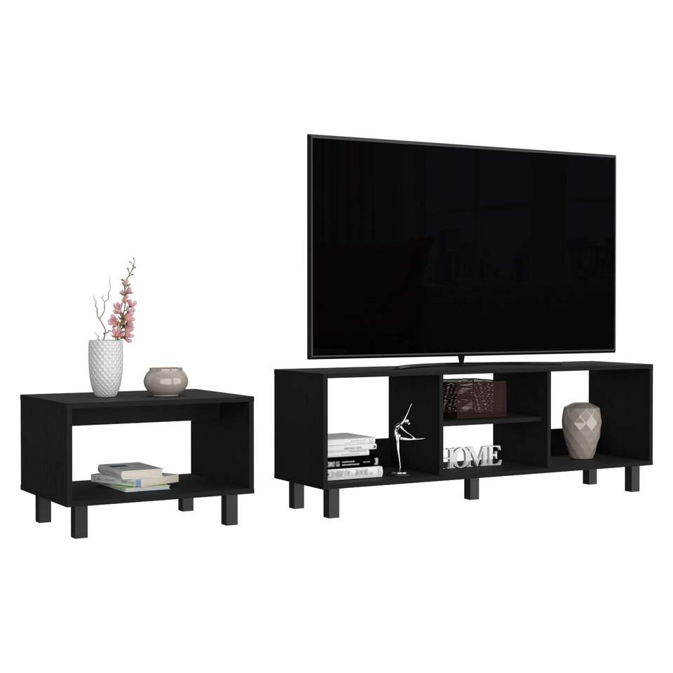 Set da Soggiorno Carter in 2 Pezzi Nero con Mobile TV e Tavolino dal Design Essenziale